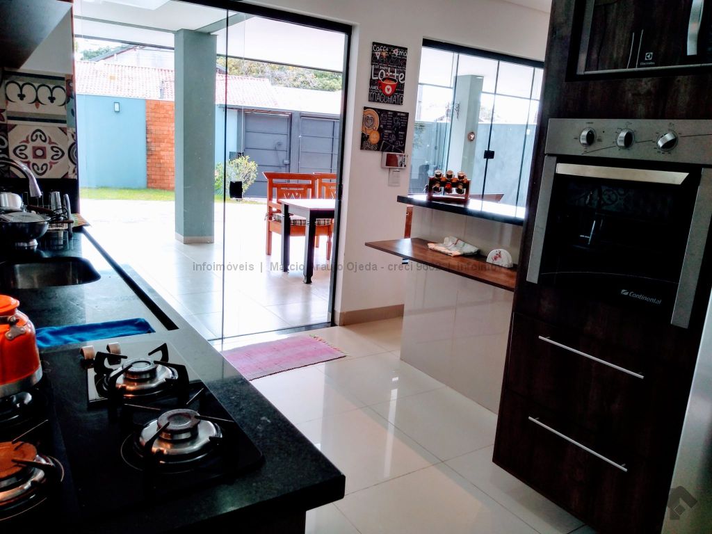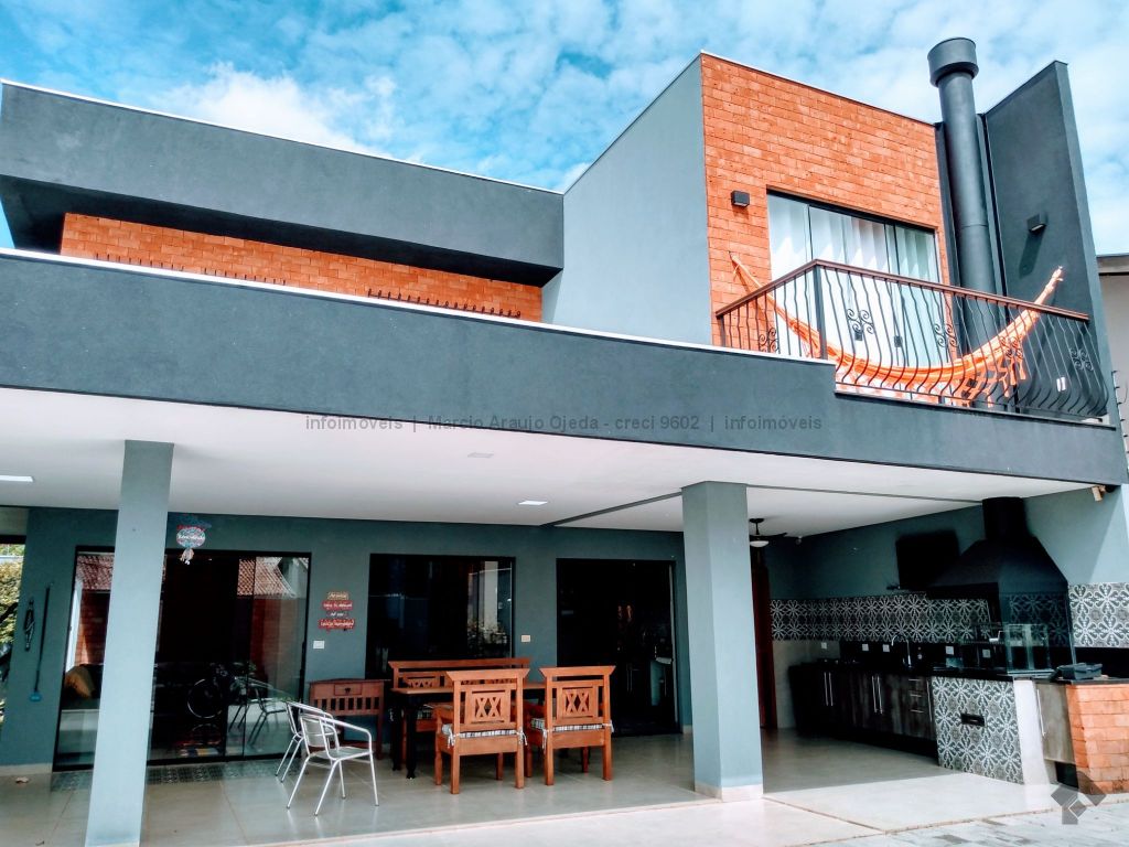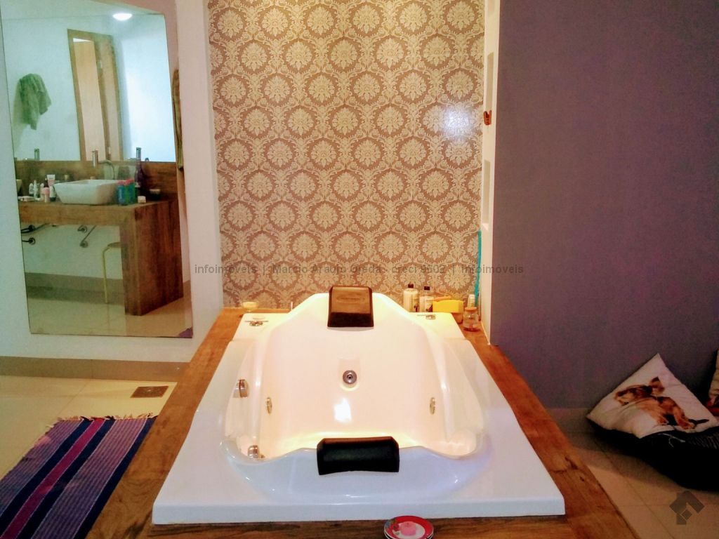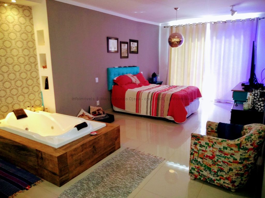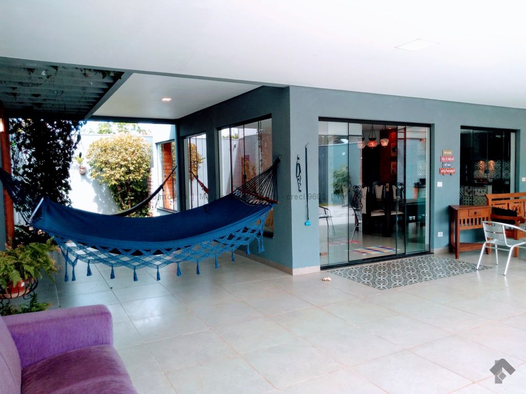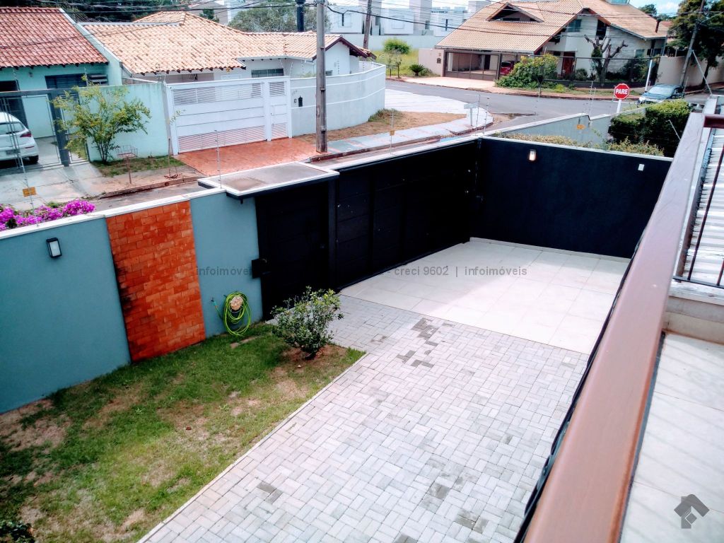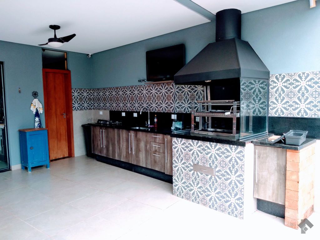 Na parte inferior conta com, sala ampla para 3 ambientes, lavabo, academia, com ar condicionado, cozinha com móveis planejado rico em pedras, incluindo geladeira, cooktop, forno elétrico embutido, micro-ondas todos em inox, lavanderia com armários, wc serviço, área gourmet com móveis planejado e com churrasqueira, inclui TV e um cooktop, ampla varanda, garagem para até 5 veículos, sendo 2 coberta. Parte superior: 3 suítes todas com ar condicionado, uma sendo suíte master com closet e com hidro, cubas suspensas individuais, e com sacada. Sistema de segurança com cerca elétrica e câmeras, todo imóvel com sistema de aquecimento.
