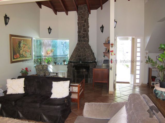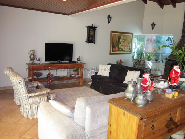 Casa completa com 4 suítes com closet, sendo uma no piso inferior, ótimas salas, linda lareira na sala, escritório, piscina aquecida com escada, câmara frigobar embaixo do balcão da churrasqueira, fogão a lenha, casa muito bem distribuída e arejada. Área de serviço completíssima.