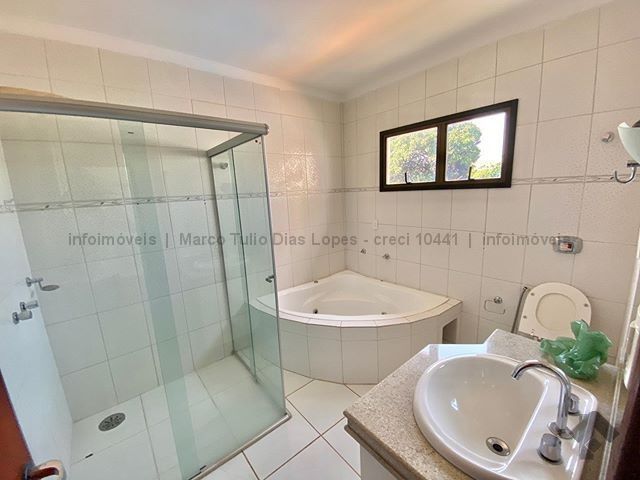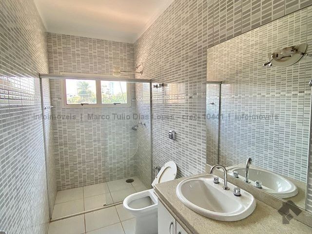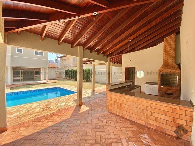 Sobrado com 2 suítes master com sacadas, armário embutido e banheira de hidromassagem. 2 suítes, todas com armários embutidos e com sacadas. Escritório, cozinha completa, despensa, quarto e banheiro de empregada, espaço para sauna, churrasqueira, piscina e área de lazer para churrasqueira e jardim próximo. Sala de esta e, sala de jantar. São 5 quartos e 7 banheiros e 2 vaga de garagem coberta.