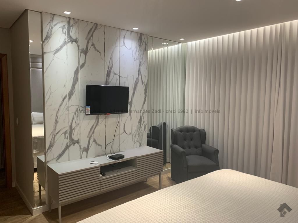 Imóvel novo, recém construído, nunca habitado. No térreo um quarto, wc social, sala 3 ambientes, estar, jantar e gourmet, lavanderia, depósito e wc da piscina. No subsolo sala de música ou adega e depósito. No piso superior suíte máster com closet mais 2 apartamentos. No quintal piscina aquecida e sauna. Projeto luminotécnico, esquadrias de alumínio, suíte com veneziana integrada motorizada. Armários na suíte, closet, wc da suíte e sala gourmet. Imóvel com aquecedor solar de 400 litros.