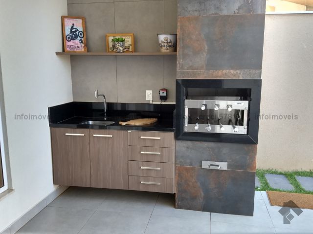 Sobrado em condomínio com 3 suítes e ótimo acabamento. Varanda com churrasqueira e espaço para piscina ou jacuzzi. Condomínio com excelente área de lazer.