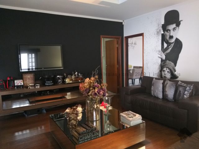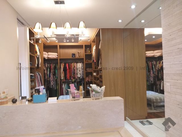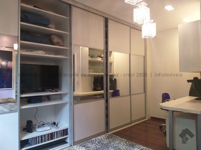 Uma suíte com closet, dois apartamentos com armários, sacada, sala de TV sala de estar, sala de jantar cozinha planejada, quarto e wc de empregada, piscina, espaço gourmet.