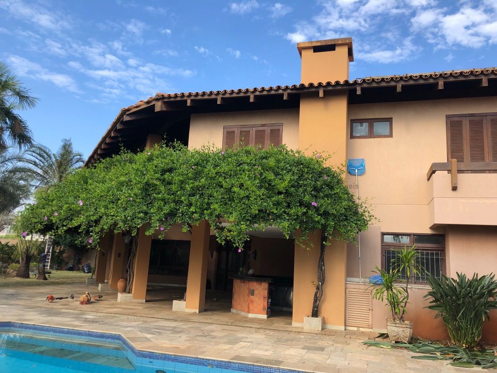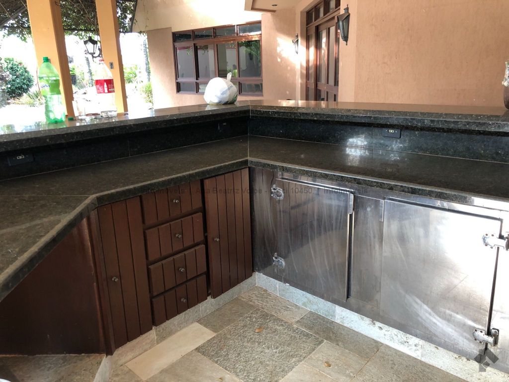 Hall, sala para 3 ambientes, sala jogo e home, adega, 2 lavabos, varanda, espaço gourmet com balcão refrigerado, piscina com prainha, sala de jantar com pé direito duplo, cozinha planejada com copa, despensa, louceiro, lavanderia, 2 quartos para empregados, 2 wcs serviço, 2 boxes para canil, 2 depósitos externos, sala de ginástica, sauna, wc e depósito piscina e jardim deslumbrante. Madeiramento nobre em toda casa. Suíte com closet e escritório, sala íntima de tv e sacada para piscina, 2 suítes com closet, sacada e hidro, roupeiro, suíte master com sala de banho, ante sala, sacadas para jardim e closets masculino e feminino. Piso brennand com tabeiras em madeira de lei.