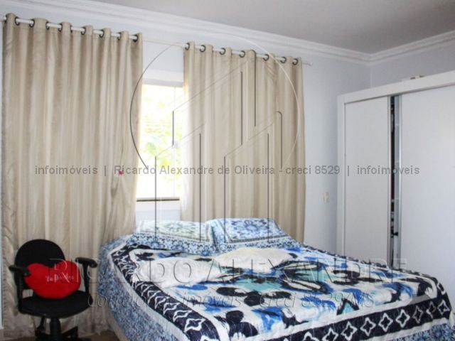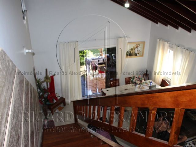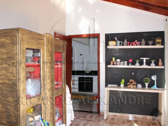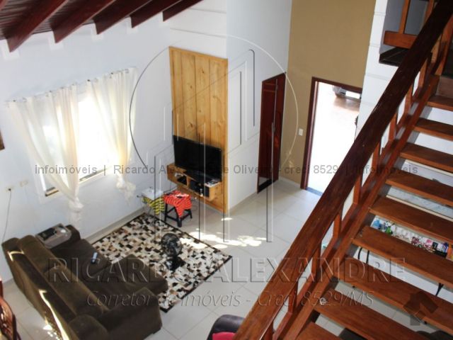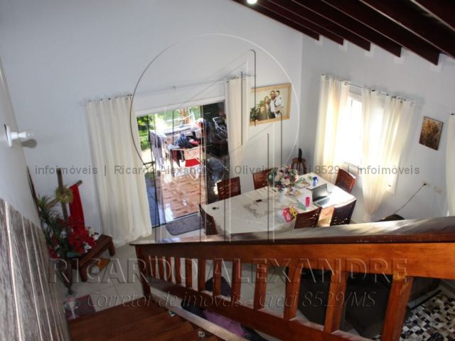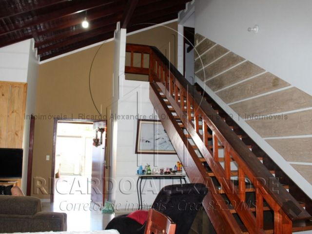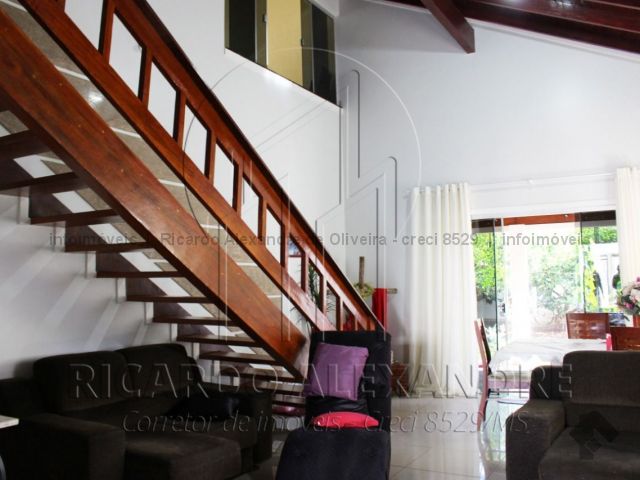 Piso térreo, garagem coberta, corredor lateral, sala, 01 quarto de casal com suite, cozinha, copa, lavabo, quintal grande, área gourmet coberta, churrasqueira e fogão, portas e janelas em blindes. Piso superior, 03 quartos com banheiro, sacada. Casa rica em blindes, escada de primeira linha.