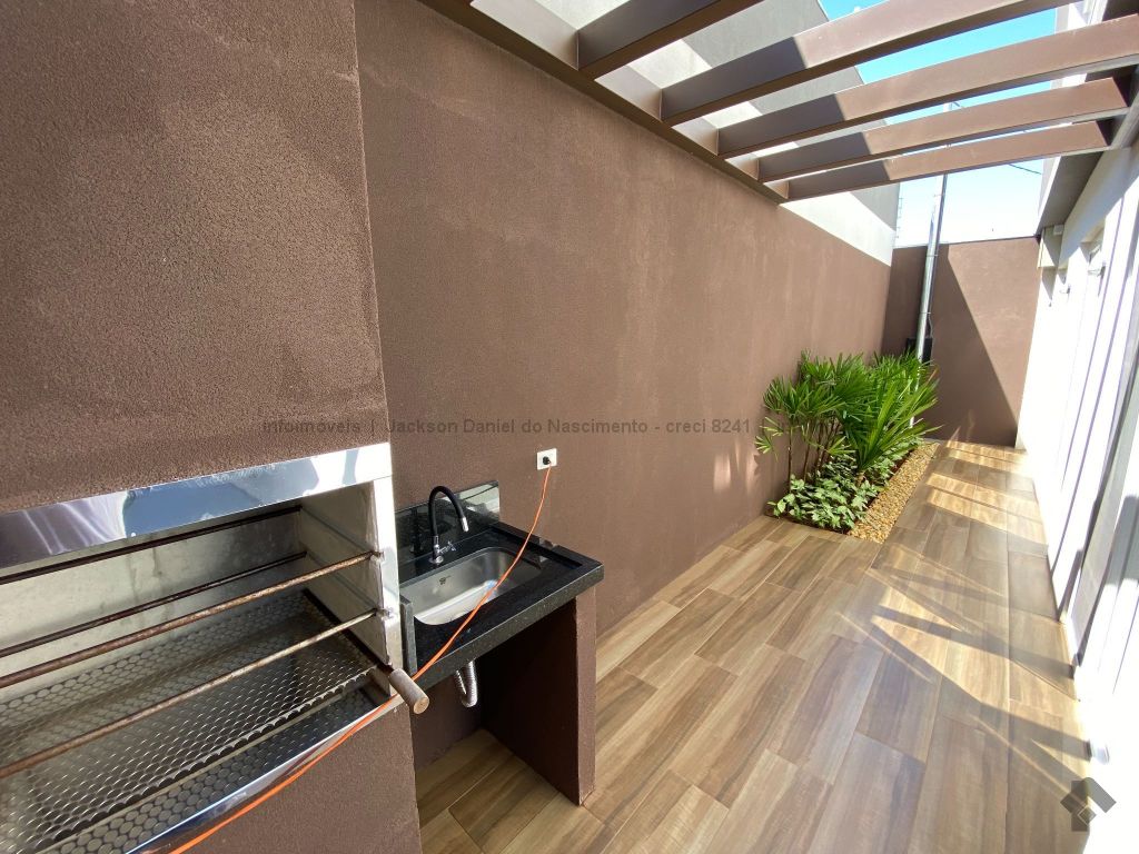 Sobrado de alto padrão recém construído, projeto arquitetônico moderno. Possui sala dois ambientes, lavabo, armário planejado embaixo da escada, cozinha com planejados, despensa, lavanderia coberta, churrasqueira. Piso superior uma suíte, dois quartos e banheiro.
