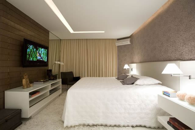 2- Luzes difusas ou indiretas, instaladas em sancas, por exemplo, não ofuscam a visão de quem está deitado, e contribuem para dar um efeito aconchegante e acolhedor ao espaço.