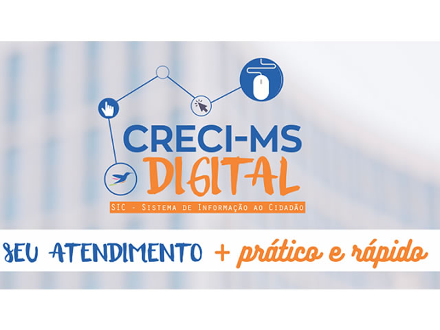 O CRECI-MS Digital (Sistema de Informação ao Cidadão) é um sistema virtual que permite a interação entre o usuário e os setores da instituição, de modo digital. Após a solicitação feita via sistema, a demanda poderá ter seu andamento acompanhado. Com interface intuitiva, que facilita o envio de solicitações, o sistema exige, primeiramente, um cadastro prévio do usuário para sua devida identificação.