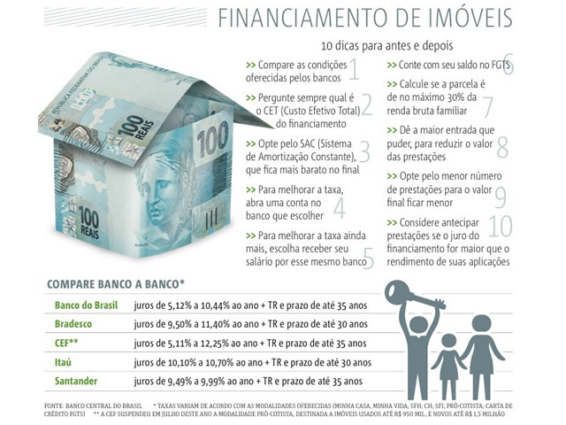 Foi o que aconteceu, e os bancos, com mais dinheiro nos cofres, voltaram a emprestar em condições mais favoráveis. O Itaú baixou os juros para crédito imobiliário de 10,5% para 10,1% ao ano. O Santander diminuiu para 9,49% ao ano, assim como o Banco do Brasil, para 9,74%, e o Bradesco, 11,40%. Na média do mercado, os menores juros são da Caixa Econômica Federal, de 9,33% ao ano.