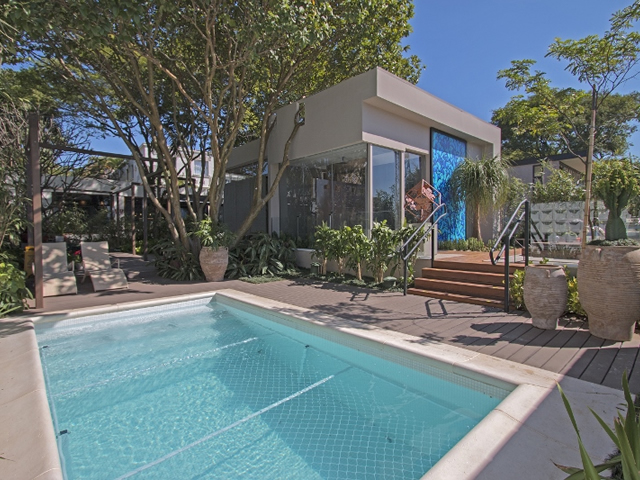 O Jardim da Piscina é integrado à "Casa Conceito", projetada pela arquiteta Jóia Bergamo. Pessuto e Jóia trabalharam juntos para tornar os dois ambientes perfeitos para uma família morar. A casa foi toda construída em vidro, com estruturas metálicas, linhas minimalistas e em formato de cubo. O espaço, extremamente transparente, ganha fluidez na integração dos ambientes. O objetivo é mostrar a possibilidade da interação entre construção e natureza.